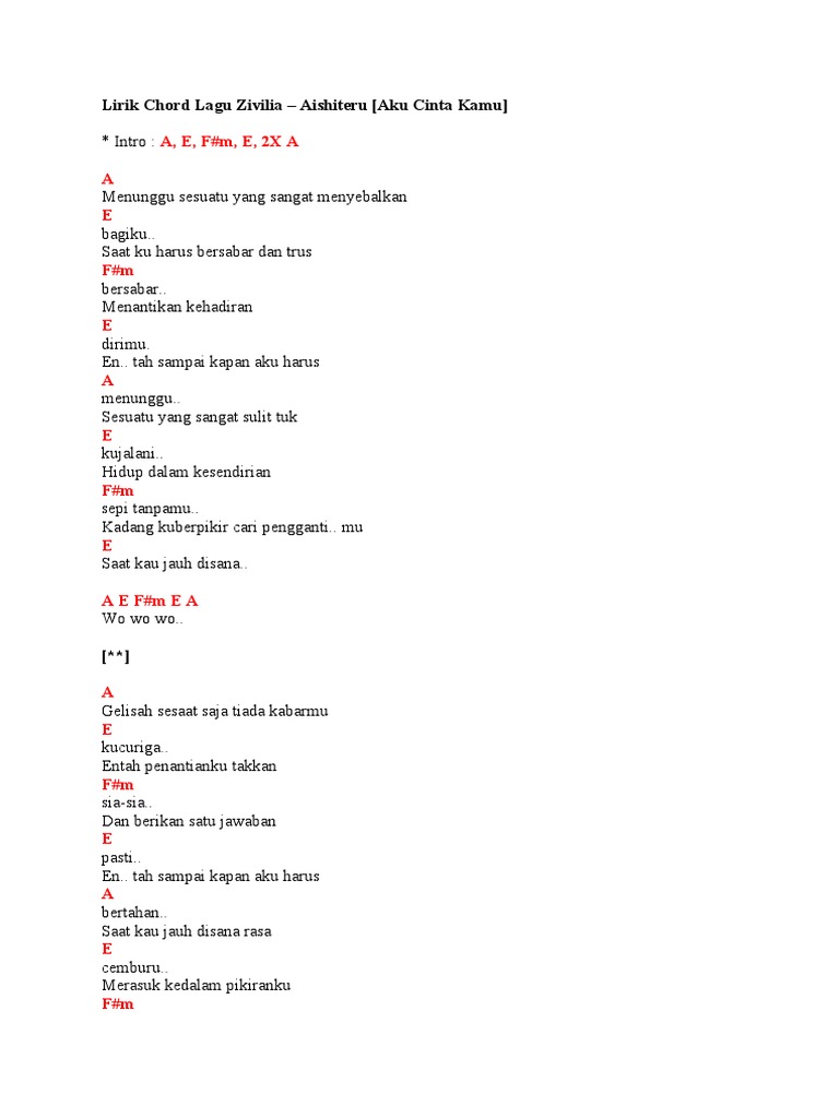 Chord Gitar Dan Lirik Lagu Zivilia Aishiteru Pdf